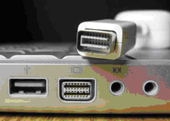 mini-VGA. Mini-DVI connectors are most commonly seen on